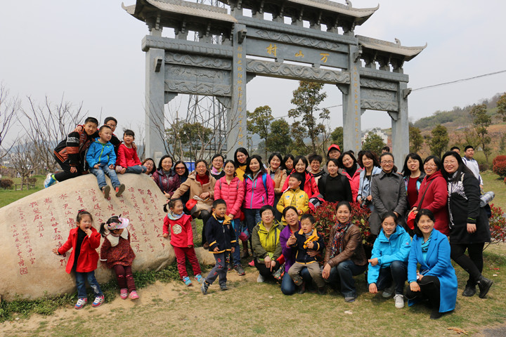 中餐后,大家又参观了位于大青山万佳山的万山村,唐代著名篆刻家、当涂县令李阳冰曾著室于万佳山,称此处有万种佳趣,故名万佳山。万山村四周环山,村庄依山而建,徽派建筑,座落有致,生态保持良好,故而空气很是清新。一上午的游览赏花,老师们此刻都感觉有些疲倦,于是大家在草坪上相依着席地而坐,相互畅聊小息,孩子们则在一旁奔跑嬉戏、放风筝、吹泡泡,共同感受这春天美好。游完万山村,老师们在依依不舍中返程,相约来年,结束了愉快的旅行。