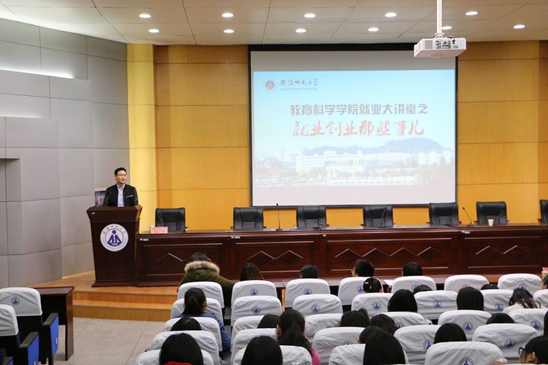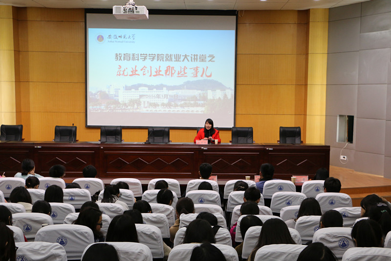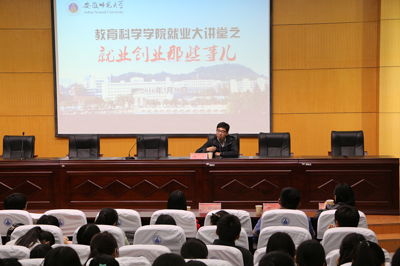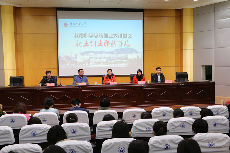 本网讯(教科院 张玉楠 张贵洁 祝晓文)为帮助毕业生和准毕业生们了解当前就业、创业的严峻形势,助推毕业生顺利就业创业,3月30日下午,学院在田楼报告厅举办“就业大讲堂”系列讲座活动之“就业、创业那些事儿”经验分享会,邀请了学院暑期实践基地——马鞍山和县的三位大学生村官朱婷婷、马宁、于洋,以及就职于海螺集团的学院优秀毕业生2008级教育技术学唐靖进行经验分享。院党委副书记张如华,各年级辅导员孟庆娟、马兴、龚伟、莫大贡,2016届毕业生以及2013级本科生参加分享会。会议由张如华主持。
