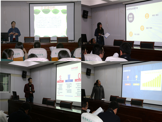参赛选手分别从自我评估、大学与职业目标定位,实施步骤及反馈调整等方面进行了规划,MBTI、SWOT分析法,大量的测试结果呈现在PPT上,每位选手结合自身专业优势所规划的大学生涯和职业生涯既有亮点,更有特点。