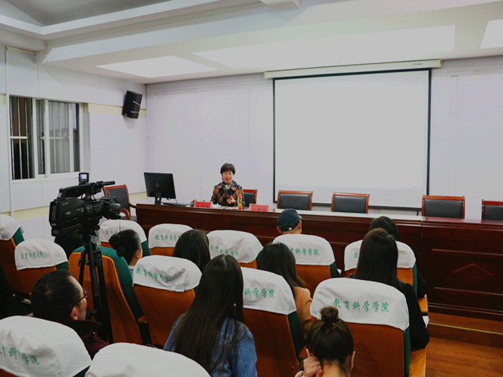 本网讯(教科院 杨一捷)3月16日下午,南京师范大学教授、“国培计划”首批专家、江苏省特级教师朱雪梅应邀来我院作了一场题为《“互联网+”时代教育评价的转型与变革》专题报告。朱雪梅教授超高的人气吸引了我院教育相关专业多名教师和教育技术专业大量研究生、本科生前来旁听。报告会由教育技术系张克松副教授主持。