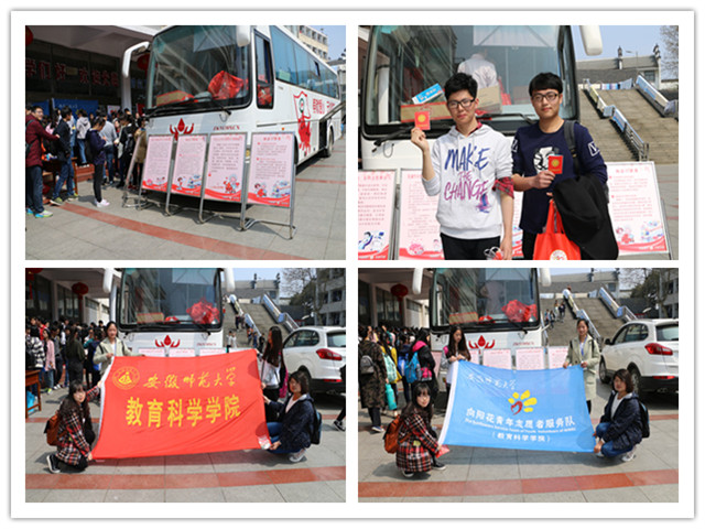 本网讯(教科院 万璇 龚伟)教科学子献爱心,涓涓碧血汇玉壶。为营造“学雷锋、献爱心”志愿服务的浓厚氛围,培养广大团员青年奉献社会、关爱他人的优秀品质,引导其以实际行动践行社会主义核心价值观。3月22日,教科院学生在赭山校区食堂广场参加了以“用热血为生命加油”为主题的无偿献血活动,本次活动由院团委组织部、学生会、志愿者大队联合举办。正值阳春三月,百花竞相争艳,但同学们的爱心在春光中熠熠生辉。