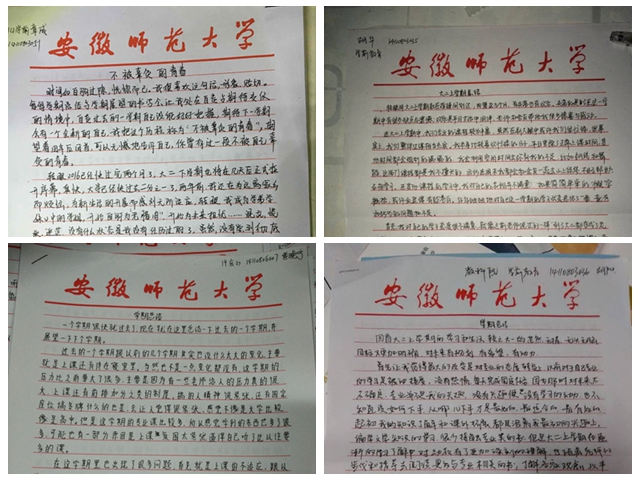 在寒假期间,14级的同学们还对已经度过的一个学期进行了回顾,并对下一学期生活做了详细的规划。大家全面认真的进行剖析,寻找自身的优点和存在的不足,以求真正地了解自己,进而完善自己。虽说字数有限,但是字里行对于自己未来的憧憬和展望确实无限的。