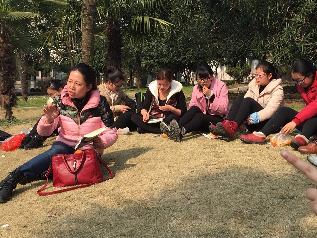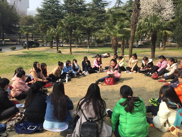 本网讯(教科院 黄玉绒)早春二月,绿意萌动,2016年2月29日下午,教育科学学院15级教育技术学专业全体同学及班主任陶佳老师在“情人坡”召开了一次与众不同的“阳光班会”。全体同学和老师在情人坡上围成一圈席地而坐,一边品尝橘子的甜香,一边沐浴和煦的日光,在醉人的春风中拉开了班会的帷幕。
