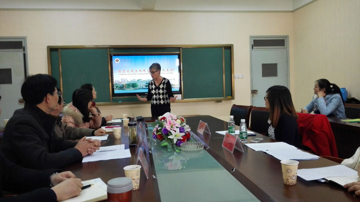本网讯(教科院 黄曼蓉 龚伟)为进一步加强中外合作办学,加快中美师生的交流和联系,2月29日上午,美国布莱诺大学代表团在院408会议室与2014级学前教育(中美合作)班的同学进行了座谈,主要就出国学习的相关事宜进行了认真交流。布莱诺大学教务校长Dr.Nancy Krippel、招生处主任Annie Johnston,院党委书记刘晓宇、院长桑青松,院党委副书记张如华,副院长李宜江、聂竹明、何海燕,以及学前教育专业教师朱立新、2014级辅导员龚伟老师等出席了此次座谈会。