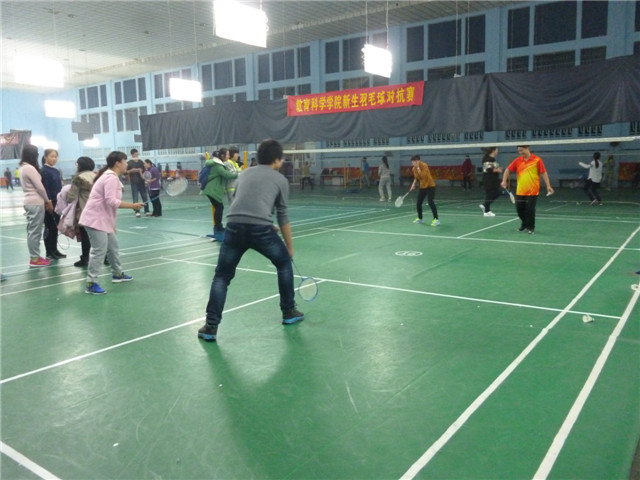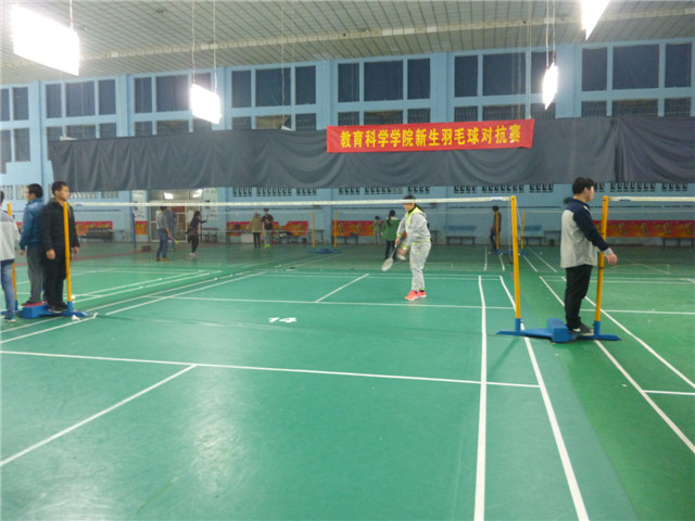 本网讯(教科院 代青清)轻盈羽毛,活力教科。为了提高我院新生的身体素质,丰富同学们的课余生活,在各专业体育委员的组织下,我院于2015年12月14日和17日在羽毛球馆举办了新生羽毛球对抗赛。来自教科院的几十名同学在四天时间里联袂上演了几十场精彩赛事,15教科院辅导员莫大贡老师作为指导老师也参与其中。