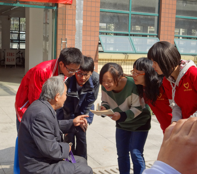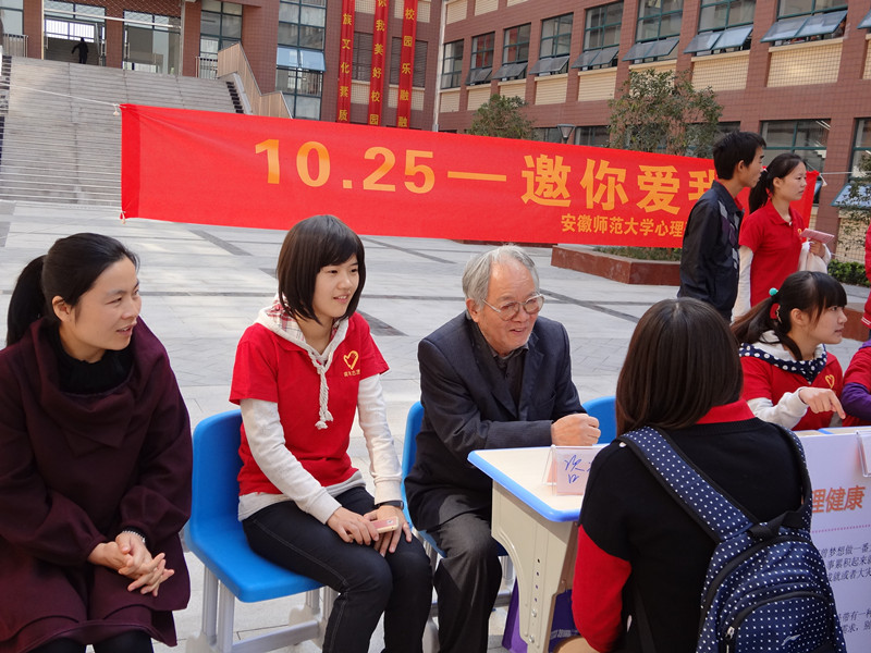 关心、协助大学生心理研究会开展活动,是许智权老师关心青年一代的另一种表现方式。作为心理研究会的指导老师,许老师除了日常工作的指导外,他每隔一段时间就会与心理研究会骨干进行沟通交流,了解社团近期的工作安排和动态。许老师总能利用自己丰富的经验给大家很好的方案和建议,并且指出社团工作的问题,帮助大家一起解决。许智权老师总说,不管做什么事情,一定要坚持,否则和没做是一样的。无论是到第二十五中学开展心理健康测试和咨询,还是在“世界睡眠日”主题教育活动中,都可以看到许老师苍老而忙碌的身影。特别是在“走进中小学,成长沐浴阳光”的心理健康教育活动中,许老师寒来暑往从不缺席,每一次、每一所学校的活动现场几乎都能看到他的身影。