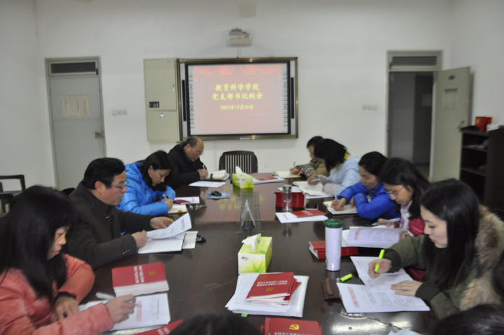 本网讯(教科院  柳丽娜)12月10日下午,院党委在三楼会议室召开党支部书记例会布置近期工作,院党委书记刘晓宇、院党委副书记张如华、各教工和学生党支部书记参加了会议,会议由院党委书记刘晓宇主持。