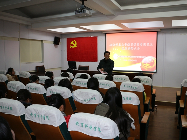 本网讯(教科院 高婷)为了坚持好中选优,不断探索入党积极分子培养与考核机制,确保发展党员质量,本着“巩固理论知识、提高党性修养、扩大民主参与”的原则,11月26日下午教育科学学院分三个地点分支部分别举行了研究生、本科生党员发展答辩会。学院党委书记刘晓宇、副书记张如华、组织员潘新安、关工委林若男老师、研究生秘书过婴宝及学生党支部书记共同组成答辩委员会,支部全体学生党员、入党积极分子及部分普通同学参与了现场评议工作。