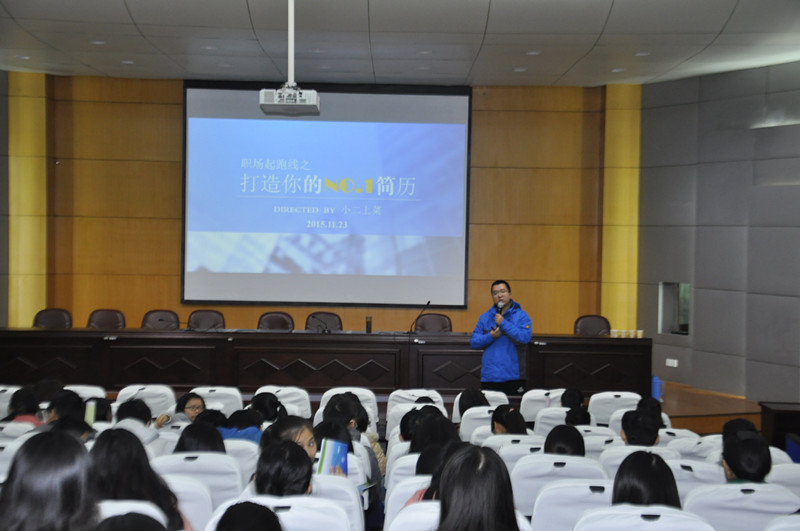 会议第二阶段是就业大讲堂开讲,首场报告由学院团委书记龚伟为毕业生们做简历制作专题培训。龚老师结合案例,现身说法,从简历特训、简历内容、简历措辞、简历投递四个方面向毕业生详细介绍了关于“简历的那些事儿”。讲座持续两个小时,同学们纷纷表示此次讲座受益极大,在此时开展简历制作专题培训极具针对性和实效性,大家对接下来的求职都充满信心。