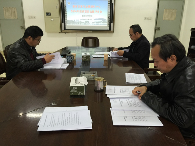 本网讯(教科院  马兴)11月23日上午,安徽师范大学教育改革与发展研究中心2016年重点项目招标评审会,在中心会议室举行。基地执行副主任周兴国教授,副主任葛明贵教授、阮成武教授参加了此次评审会。