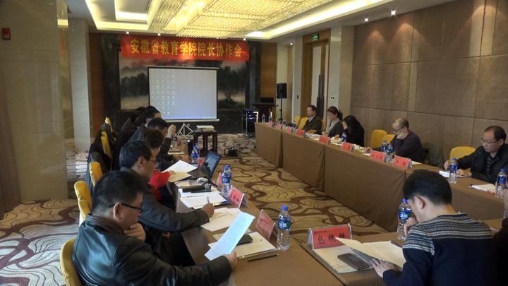 本网讯(教科院 张亦驰、吴支奎、李卯)近日,安徽省高校首届教育学院(系)负责人协作会议在我院隆重举行。来自淮北师范大学、安庆师范学院、阜阳师范学院、合肥师范学院、淮南师范学院、合肥学院、滁州学院、巢湖学院、黄山学院、池州学院、蚌埠学院、亳州高等师范专科学院等高校的教育学院(系)院长(主任)等20余人出席了会议。会议由副院长桑青松教授主持。