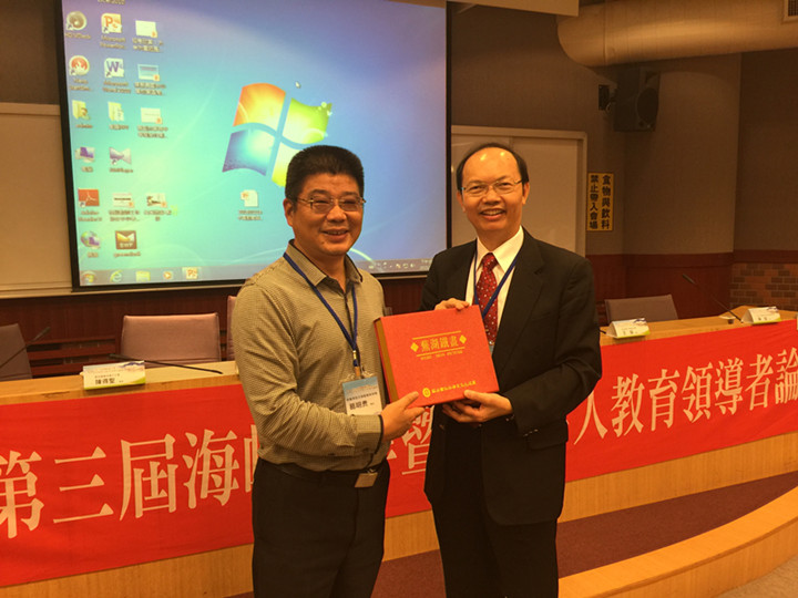 论坛期间,学院院长葛明贵与台湾暨南国际大学教育学院院长杨振升进行了亲切交谈,双方交流和介绍了学院人才培养、科学研究和社会服务等方面开展的具体工作,并将《安徽royal皇家88平台院史》赠送对方学院。