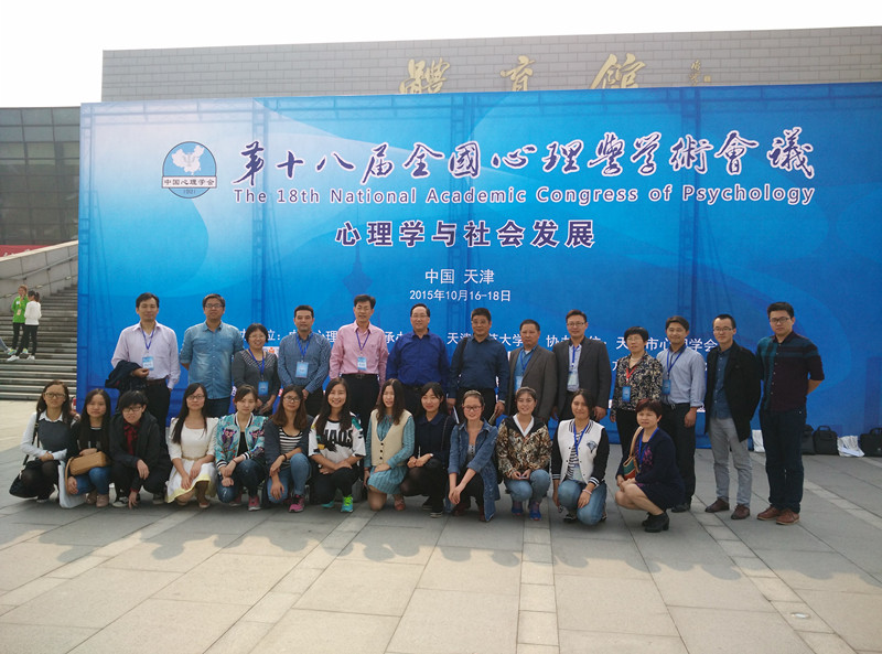 本网讯(教科院 刘伟芳)2015年10月17~18日,第十八届全国心理学学术会议在天津师范大学召开,这是我国心理学界一年一度的盛大学术交流会议。1500余位来自全国各高校、科研机构的专家学者和青年学生齐聚天津,参加此次盛会。我院教师葛明贵教授、姚本先教授、桑青松教授、龙文祥教授、王道阳副教授、何元庆副教授、刘伟芳老师、郭振娟老师以及心理学专业部分研究生同学参加了此次大会。