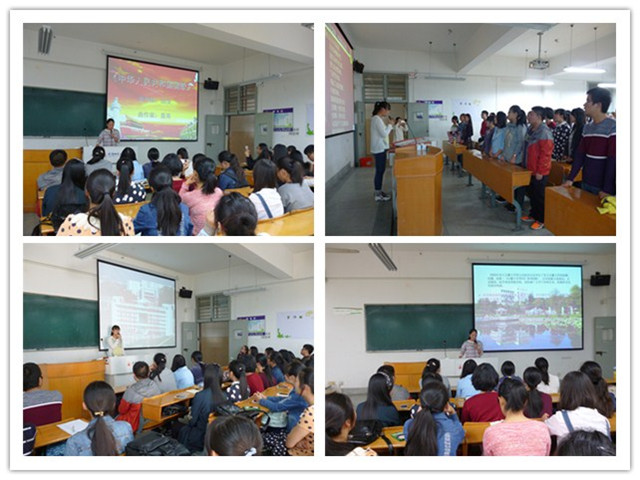 10月14日下午三点在田楼8409开展国歌团歌校歌教唱活动,15级心理学和学前中美的同学到场参与。通过主持人对共青团的介绍和视频资料的播放,同学们更加深刻的领悟了在党的领导下共青团的光辉岁月,14级老生为新生们进行国歌《义勇军进行曲》、团歌《光荣啊,中国共青团》和校歌的教唱活动活跃了现场气氛。