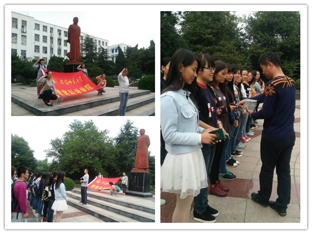 10月21日15级教育技术学全体成员于上午九点在陶行知像广场举行了中国共产主义青年团“三证”颁发会。团委书记龚伟老师以及2015级辅导员莫大贡老师莅临现场参加了此次活动。