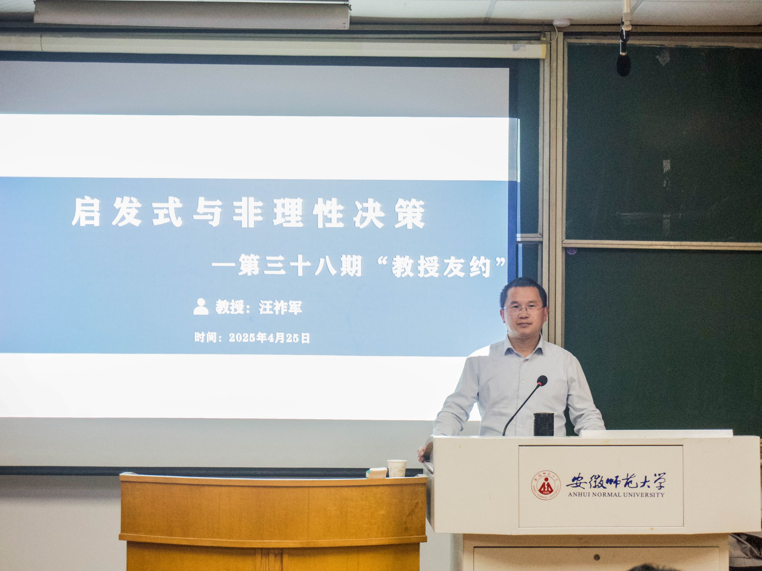 4月25日晚,教育科学学院于田家炳教育书院8603教室开展第三十八期“教授友约”活动。汪祚军教授受邀开讲,聚焦“启发式与非理性决策”,为同学们带来深度分享。