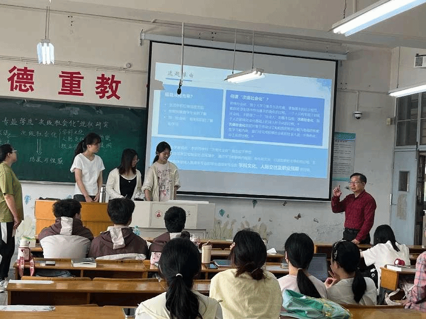 第二组成员作了《转专业学生"次级社会化"现状研究》的学术汇报。该组从学科文化、人际交往和职业预期三个维度,详细阐述了转专业学生的"次级社会化过程"。针对现场同学提出的抽样策略和研究对象界定问题,小组成员进行了回应。徐红教授随后深入解析了抽样方法,并重申了质性研究的规范原则。