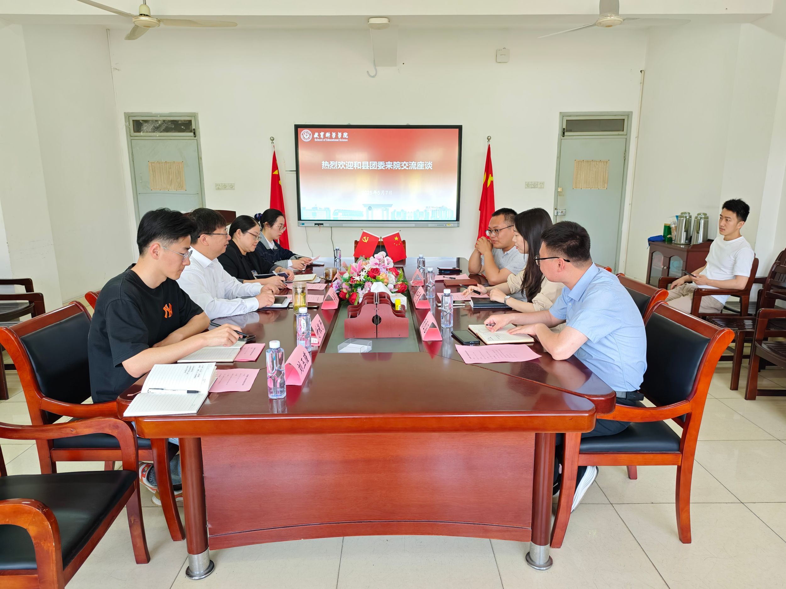2025年5月7日上午,马鞍山市和县团委一行来院交流座谈,和县团委书记杨子慧、团委副书记朱恒涵、历阳镇党委委员马宁、学院党委书记许国飞、副书记杜凤、团委书记付银行、23级辅导员金凤仙、刘玉瑾参加。