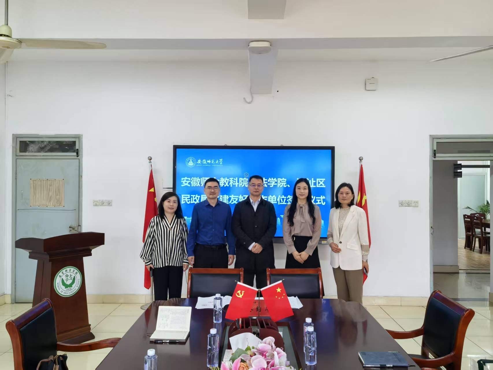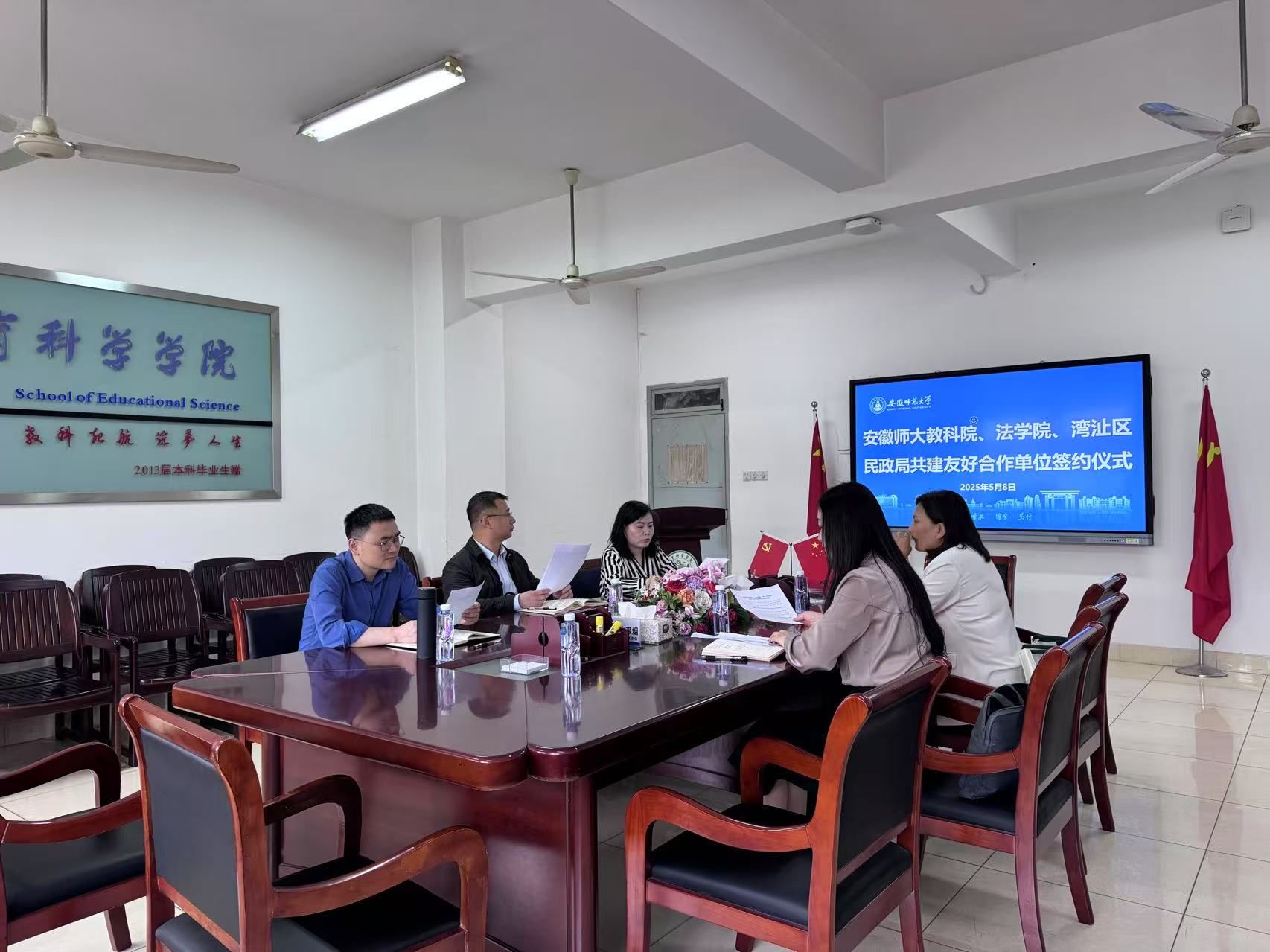 在与会人员的共同见证下,湾沚区民政局代表与教育科学学院、法学院代表正式签署了共建友好合作单位协议,旨在人才培养、志愿服务和科学研究等方面加强合作,协同开展芜湖市湾沚区困境儿童心理健康关爱、个案服务等工作。