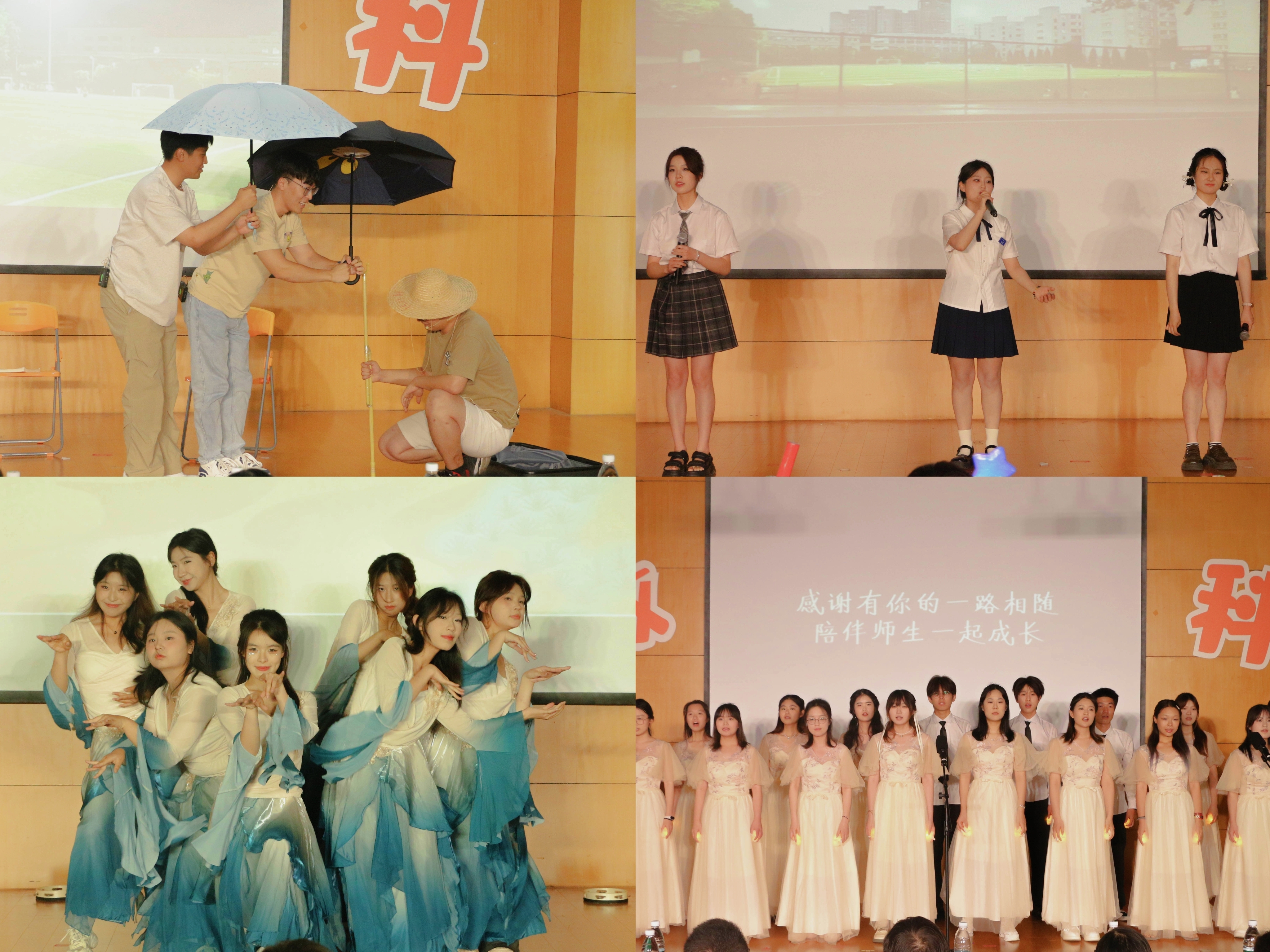 青春踏浪逐芳华,梦想为舟赴星河。晚会在一阵强烈的鼓点中拉开帷幕,乐队用激昂活力的音符敲动着在场每个人的心弦;教科院舞蹈队一曲《What is love》展现了青春跳动的多巴胺,用舞蹈向世界宣告热爱的勇气;合唱《世界上的另一个我》让毕业生们在歌声中与那个“我”相遇,共同铭记这段难忘的毕业时光,勇敢地迈向未来;声音是灵动的画笔,勾勒出校园生活里的点点滴滴,配音表演《“声”临其境》解锁了一份专属教科学子的“声”动回忆。