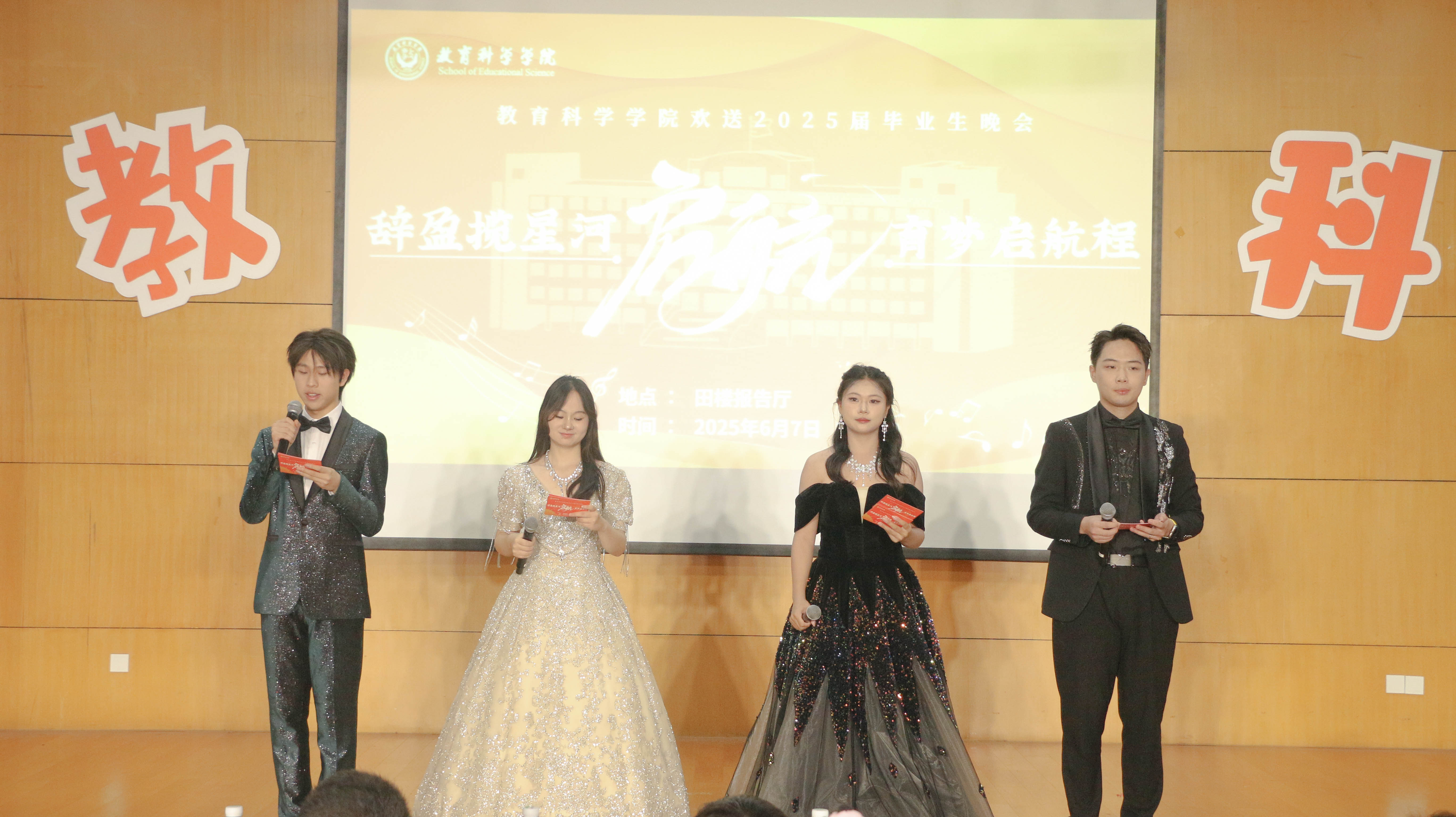 晚会由“筑梦·青春踏浪逐芳华”、“逐梦·载舟载梦济沧海”和“赴梦·沐光笃行拓新程”三个篇章构成,各具特色的十个节目不仅是一场视听盛宴,更是对教育科学学院毕业生们校园生活的深情回忆和对未来征程的美好祝愿。