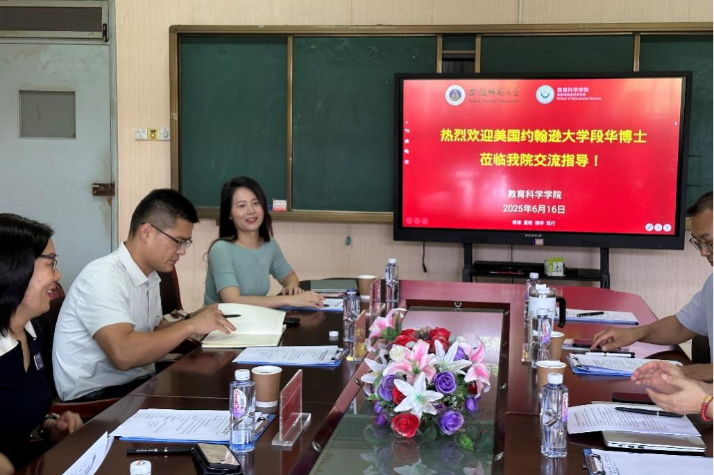 为深化我校与美国约翰逊大学合作举办的现代教育技术专业硕士研究生教育项目,提升办学质量,教育科学学院于6月16日下午在408会议室成功举办中美合作项目座谈交流会。美方项目负责人、约翰逊大学国际关系及国际教育主任、泰普拉教育学院副教授段华博士应邀出席交流。