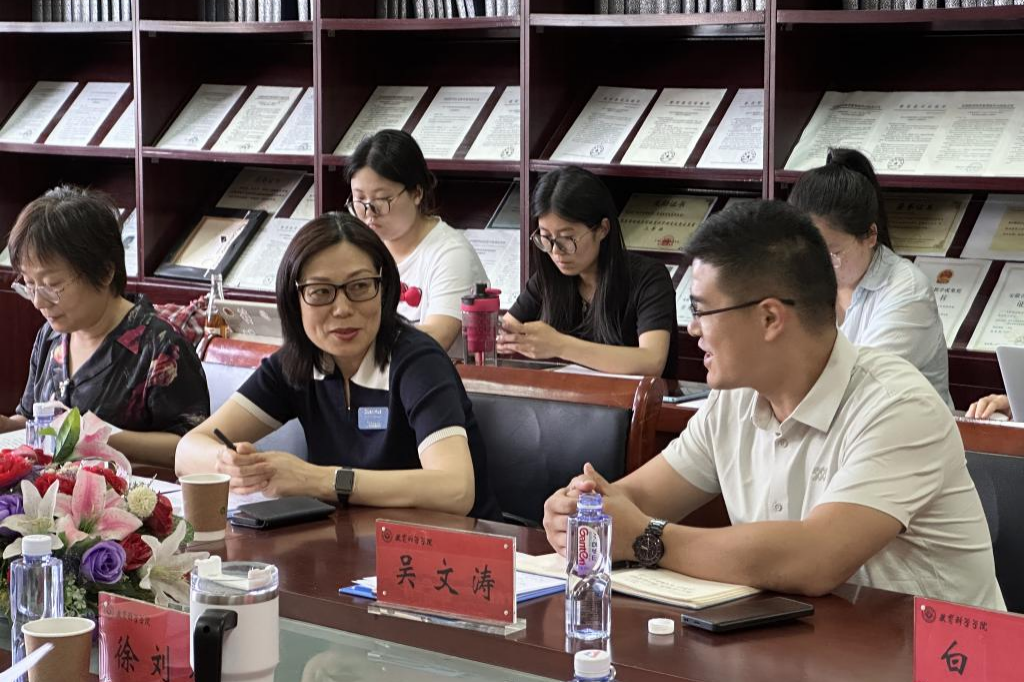 教育科学学院院长吴文涛代表学院对段华博士的莅临表示热烈欢迎。座谈会上,学位点负责人白倩系统介绍了现代教育技术(中美合作)项目近年来的进展、发展规划及在教育部2023年专项评估中存在的主要问题。段华博士则深入分享了约翰逊大学的核心办学理念、特色课程体系,并详细介绍了近年来我院赴美研究生在该校的学习、研究及生活情况。