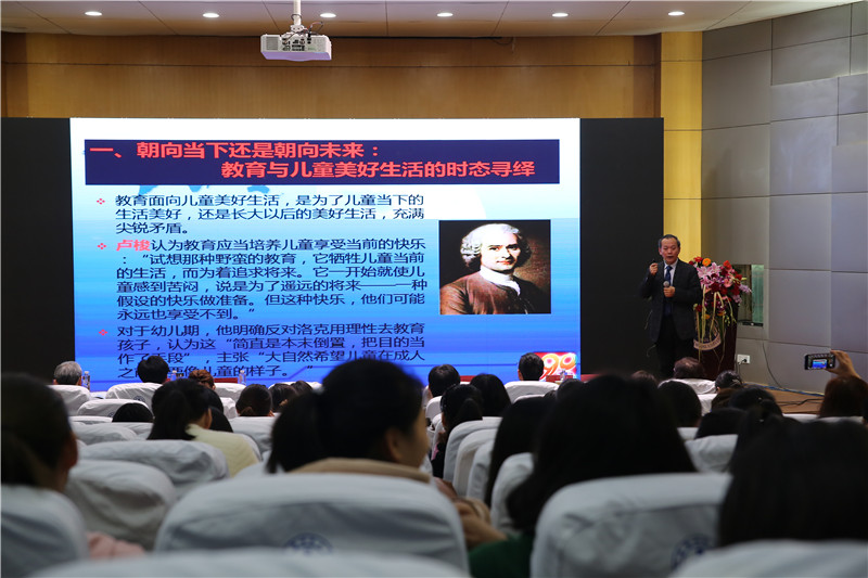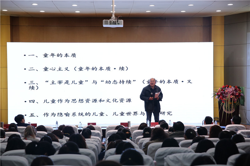 随后,华东师范大学教育学部的刘晓东教授作了“童年哲学论要”的主题演讲。刘教授旁征博引探讨了童年的本质、童心主义,“主宰是儿童”与“幼态持续”,儿童作为思想资源和文化资源,以及作为隐喻系统的儿童、儿童世界与儿童研究。刘教授指出,童年哲学或成“未来哲学”体系的核心,童年哲学、“未来哲学”有助于促进中国哲学的复兴。儿童本位不只是现代教育学的基本原则,也是建设现代化的社会、文化、伦理、政治的基本原则。