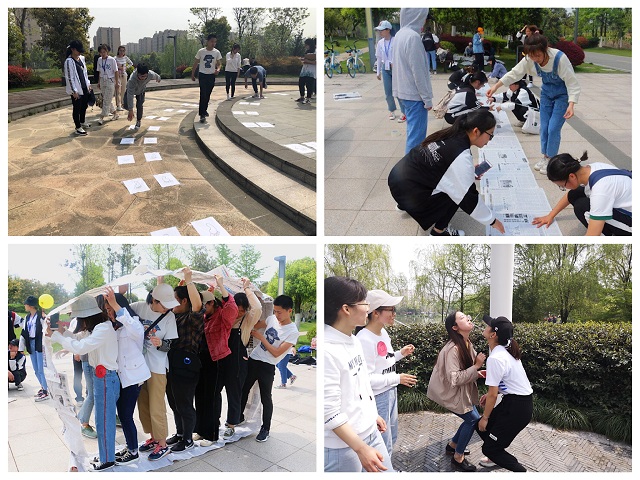 到达雕塑公园之后,探索游戏也由此开始。本次探索游戏共分为回味经典和青春无极限两个部分。学生会的工作人员早早地来到游戏地点做好后勤准备。在力量大比拼中老师们展现出了他们的团结和拼搏精神,与学生进行了一场别开生面的拔河比赛,最终教师组以微弱优势取胜。而青春无极限活动则有五个小游戏组成,学生需要前往指定地点进行游戏。有考验同学们观察能力和细心程度的“与历史照张相”;增强身体平衡性和协调性的“手脚要正确”;考察同伴之间默契和合作能力的“吸管大作战”;考验记忆力的“十二生肖大作战”和有趣的“无敌风火轮”。所有活动都是采用计时统分决出最后的胜出队伍。活动过程中,参赛队伍依照指示有条不紊地进行游戏的比拼,整个雕塑公园中充盈着学生们活力满满的笑语声。最后则是工作人员撕名牌的环节,为活动画下了完美的句号。