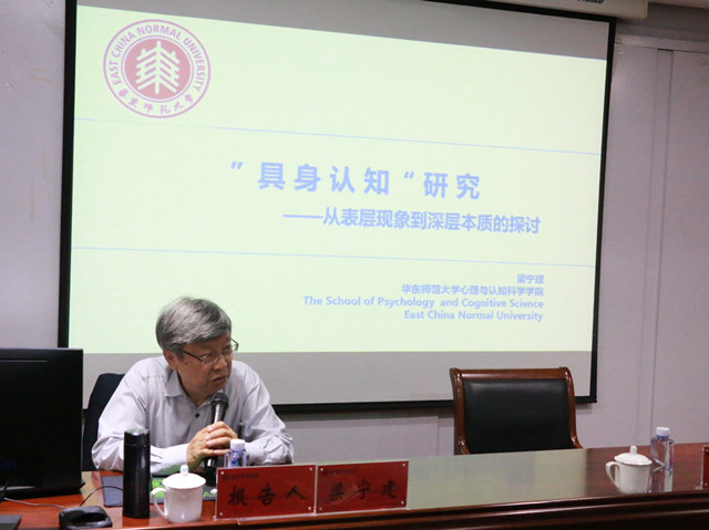 本网讯(文/孙益颍图/张威威)5月30日上午,华东师范大学教授、博士生导师、《心理科学》杂志主编梁宁建做客文津论坛,作了题为“‘具身认知’研究——从表层现象到深层本质的探讨”的学术讲座,本次活动在我院三楼学术交流中心进行,由院长桑青松主持,心理学专业教师和研究生到场学习。