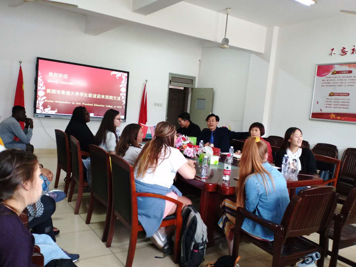 接下来,在轻松愉快的气氛中,中美双方师生互相作了自我介绍,并一起认真观看了学院形象宣传片和校史纪录片,从而增进了中美双方学生对我院和师大发展历史的了解。