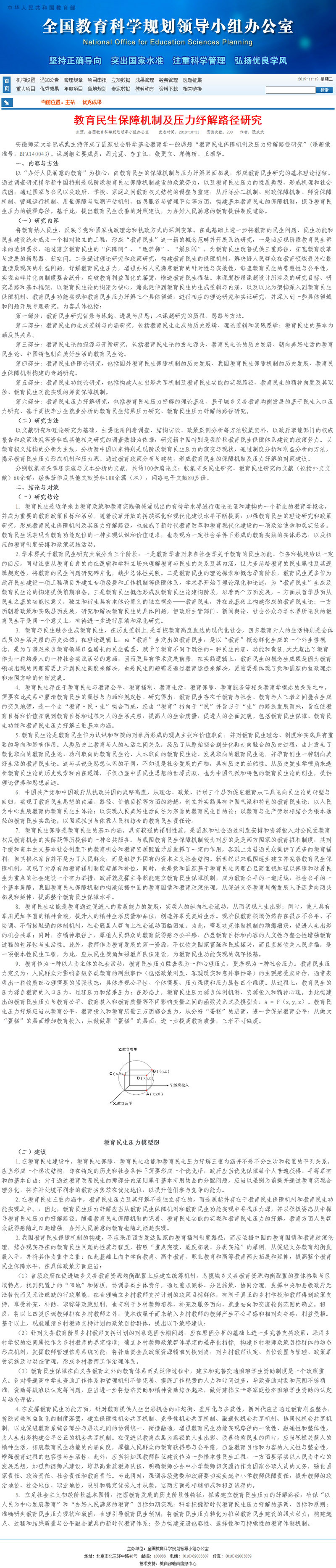 本网讯(校科研处 教科院)近日,学院阮成武教授主持的2014年度国家社科基金教育学项目“教育民生保障机制及压力纾解路径研究”(项目批准号:BFA140043),顺利通过结项验收,结项等级被评为“良好”。该成果入选全国教育科学规划领导小组办公室网站优秀成果栏目。
