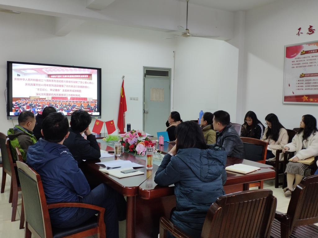 会上,方泓传达了关于认真学习贯彻党的十九届四中全会精神的通知,他指出党的十九届四中全会是在中华人民共和国成立70周年、中华民族伟大复兴关键时期召开的一次重要会议,具有重大而深远的意义;他强调,深入学习贯彻落实党的十九届四中全会精神是当前和今后一段时间里的重大政治任务,要切实加强组织领导,将深入学习贯彻党的十九届四中全会精神与主题教育工作紧密结合起来,在全院师生中掀起学习热潮,推动党的十九届四中全会精神入心入脑,武装思想,推动工作。副院长聂竹明以PPT形式领学了《中国共产党十九届四中全会会议公报》,他从一个重磅文件、一系列重大活动评价、一个重要判断、制度优势:十三个“坚持”、一个总体目标、未来部署:十三个“坚持和完善”等六个方面对公报内容进行了全方位的解读。副书记张如华领学了公报中关于如何理解“中国之治”的理论文章,她表示要清晰了解我国国家制度和治理体系所要达到的水平和层次,加深理解坚持和完善中国特色社会主义制度、推进国家治理体系和治理能力现代化的重大意义。