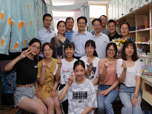 毕业总带着伤感,而校院领导老师的殷殷嘱托更像是“暖心剂”,给离别的场景增添了一抹“欢送”的喜色。张庆亮校长在深入学生宿舍慰问毕业生时,对于同学们四年来取得的成绩以及毕业后的选择给予了充分肯定,并鼓励同学们在新的起点、新的岗位上继续努力、积极进取,力争取得更大的成绩,为母校添光增彩。校领导的勉励和期许让同学们振奋,“专业话别会”的举行则留下更多感动和难忘。作为教科院今年毕业生文明离校工作的亮点,学院在充分考虑疫情防控的现实情况下,取消了集中举行毕业典礼的初步想法,将更多的时间留给了悉心教育、陪伴学生四年的老师们。7个专业,226位学生,每一位同学都参与到了这一次的“话别会”当中,这其中既有视频连线时的感情流露,也有走上讲台时的依依不舍;既有师生共话时的丝丝回忆,也有欢声笑语背后的点点泪光。老师们的谆谆教诲体现了身为人师的责任与使命,同学们的深情点头展现了师大学子的担当与意志。“以勇气际会挑战;以自信际会机遇;以忠贞际会爱情;以温暖际会友谊;以奋斗际会成功;以乐观际会曲折;以沉思际会人生;以感恩际会生活;以宁静际会自我;以大爱际会世界。”生命际遇的背后不仅是师大“厚重朴实、至善致远、追求卓越、自强不息”精神的传承,更是师大“勤学慎思、质朴谦逊、知行合一、求实求新”的学风的践行。