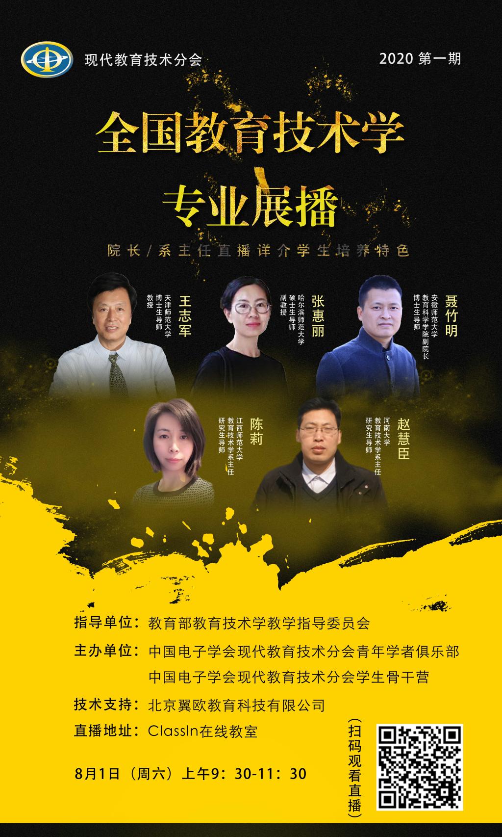 本网讯(教科院 裔艳)8月1日上午,我校与天津师范大学、河南大学、哈尔滨师范大学、江西师范大学等作为第一期主讲嘉宾单位,参加了教育部教育技术教学指导委员会指导、中国电子学会现代教育技术分会主办的全国教育技术学专业展播活动。我院副院长聂竹明教授参加了此次展播活动。