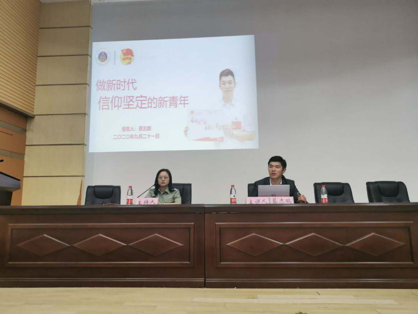 开学当日,教科院党委副书记张如华,辅导员蔡文、梁冬及全体新生齐聚科技小礼堂,召开了20级新生第一次集体班会,对所有新生表示热烈欢迎。通过三位老师的精彩介绍以及几位新生对大学生活的展望与规划的分享,让在座新生初步了解了大学生活,接受了大学的第一课。班会现场热情高涨、欢笑不断,师生之间的初识初知为之后的学习交流打下良好基础。为了进一步加强新生对大学的初体验,9月21日学院邀请蔡志鹏老师在科技小礼堂为新生们带来一场精彩的领航青春报告会。报告以“做新时代信仰坚定的新青年”为主题,蔡志鹏老师向新生展示了自己学生时期以来杰出的经历,并通过回答学生提问,进一步展示了如何做新时代青年,绽放青春光彩。报告会激起了众多新生对于大学生活的向往以及为青春奋斗的决心,鼓励学生向前向上。