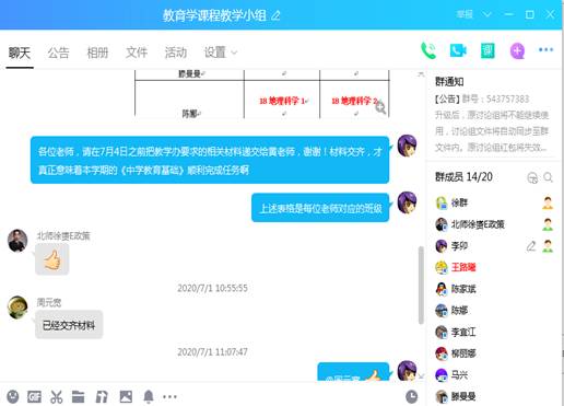 教师教育是安徽师范大学的特色和底色,教师教育类课程在师范生课程体系中占有重要的地位。为进一步加强沟通合作,深化推进课程思政建设,教师教育课程团队由课程负责人以课程为单位分别组织建立了《中学教育基础》课程教学研究小组、《现代教育技术应用》课程教学研究小组、《中学生心理发展与教育》课程教学研究小组,形成教学与研究共同体。在“网络学习共同体”理念的引领下,通过在线网络渠道,团队老师深化认识统一思想,采用集体备课方式为课程思政建设做准备,及时交流沟通授课准备情况、授课过程中出现的问题等,共商课程思政建设过程中存在的问题,深入研讨教师教育类课程及各教学环节育人元素和育人功能,思考如何将课程思政落实到课程目标设计、教学大纲修订、教案课件编写各方面,积极推进理念、内容和方法创新,共同推进课堂教学质量的提升,全面提高人才培养质量。