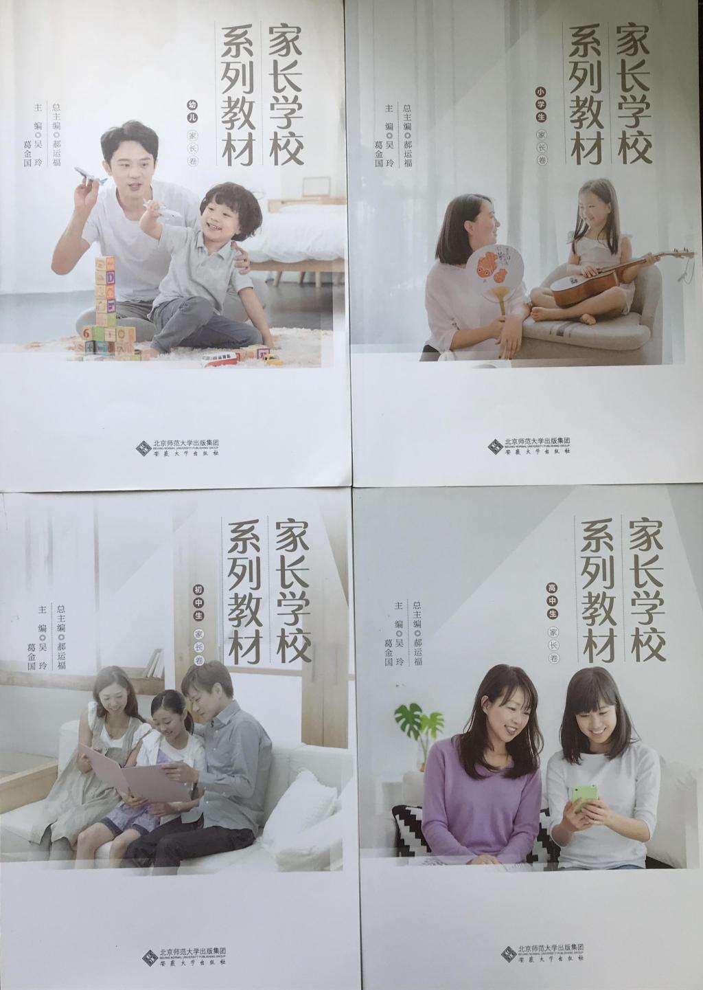 早前,同样是应教育厅邀请,吴玲教授、葛金国副教授负责了安徽省《家长学校系列教材》的编写工作,该套教材为我省第三版家教教材,有幼儿家长卷、小学生家长卷、初中生家长卷、高中生家长卷共4本,由北京师范大学出版集团、安徽大学出版社出版发行。