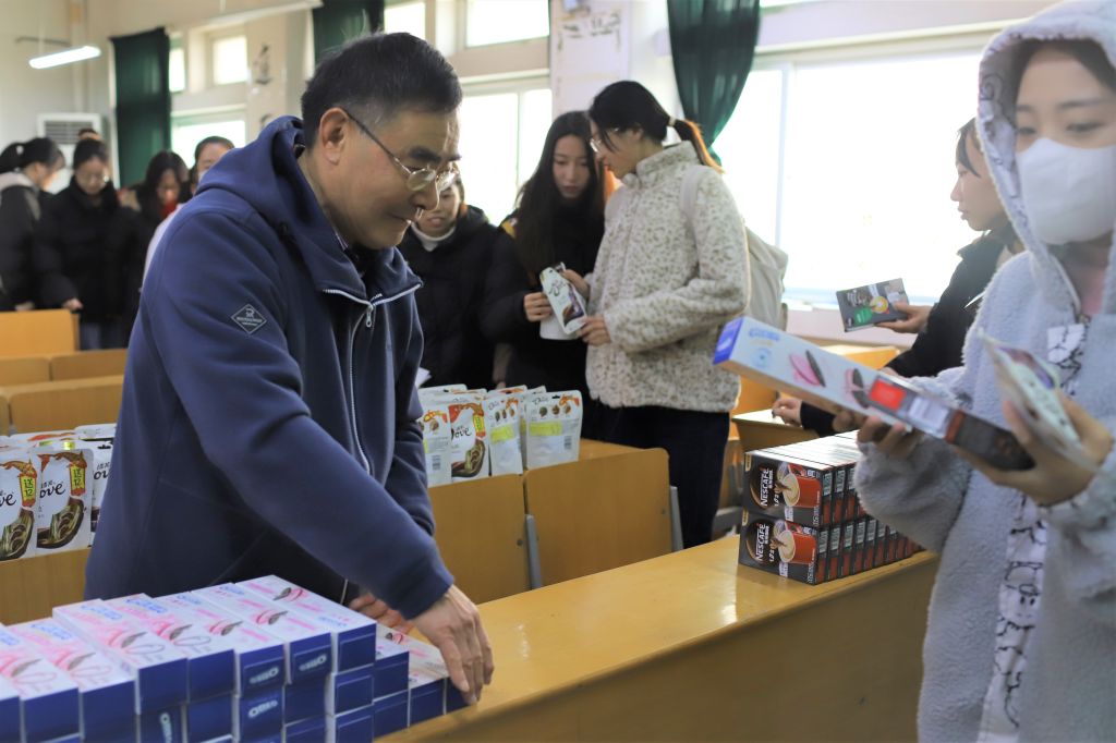在老师们殷切的寄语后,教科学子有序领取学院精心准备的慰问品,学院领导和老师与同学们亲切交流,以微笑和鼓励给学生们传递力量,让考研学子备受鼓舞。这些物品寄托着教科院对同学们的期望,激励同学们在接下来的复习过程中持之以恒,奋进不息。