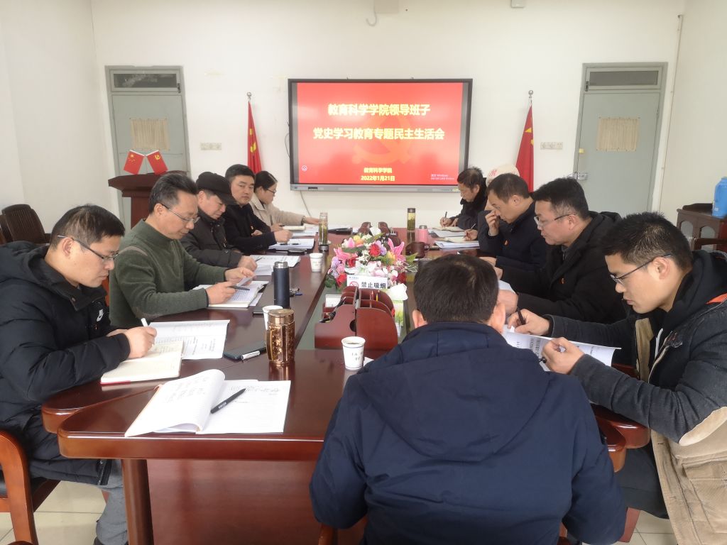 1月21日下午2点30分,教科院党委在学院308会议室召开党史学习教育专题民主生活会,会议由党委书记方泓主持,学校党史学习教育指导组组长张树文和成员杨礼玉到场指导,学院党委委员、纪委委员参加了会议。