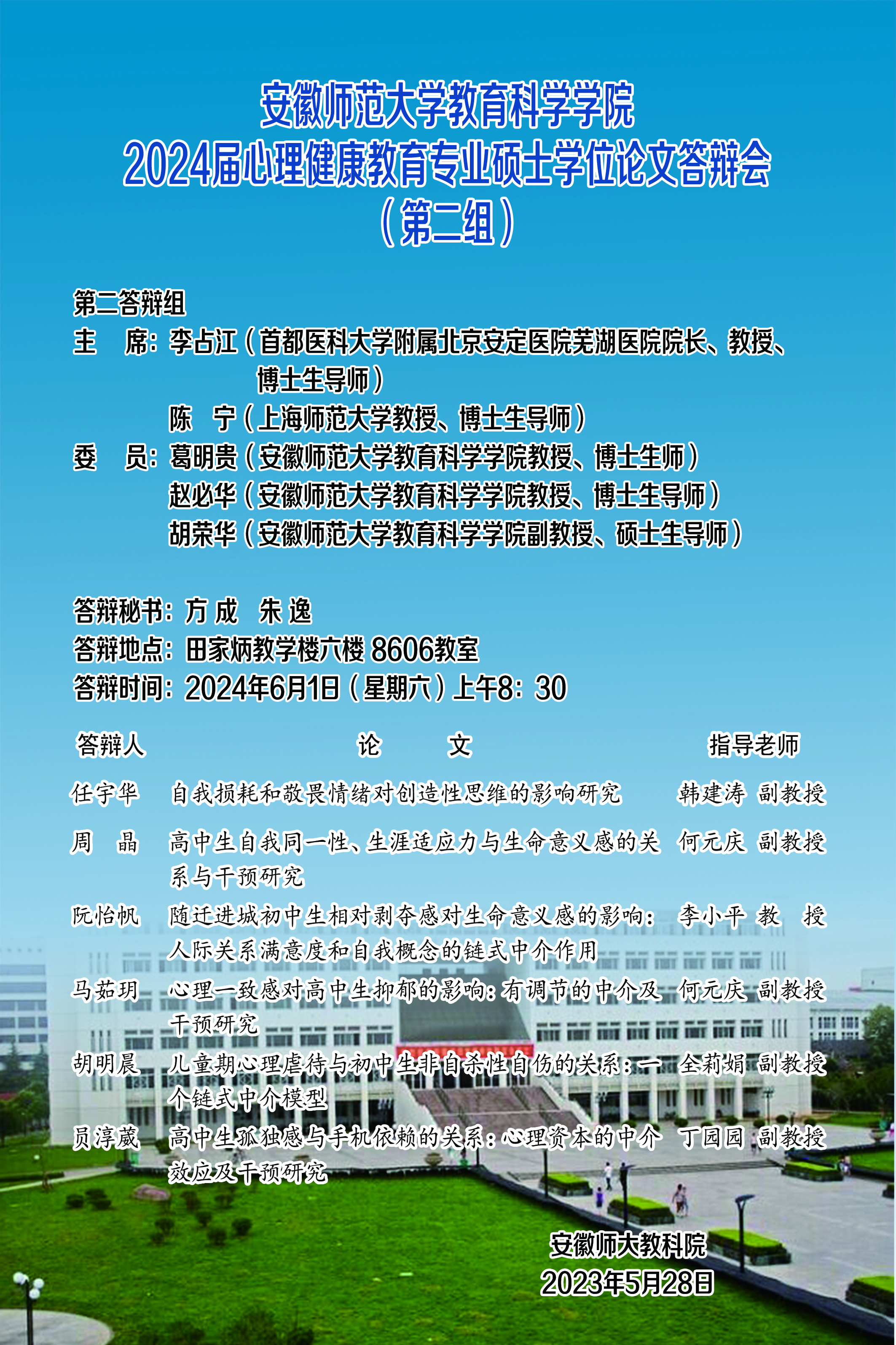教育科学学院2024年上半年硕士研究生学位论文答辩公告(二)