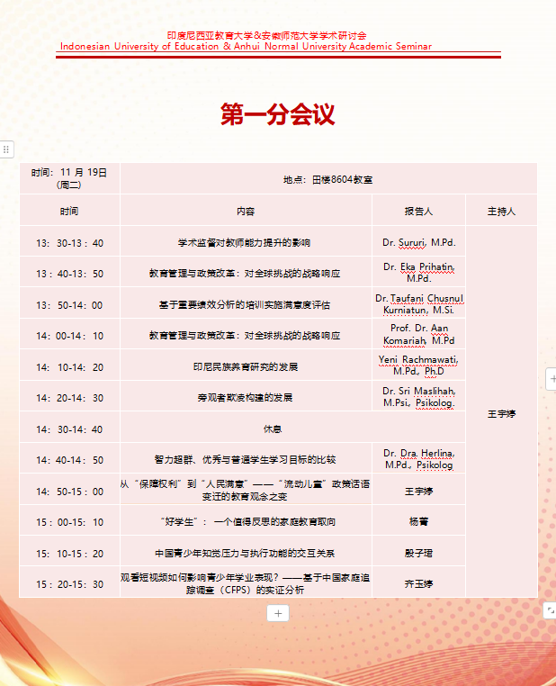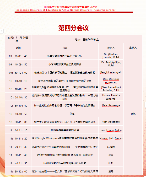 印度尼西亚教育大学与安徽师范大学学术研讨会会议日程
