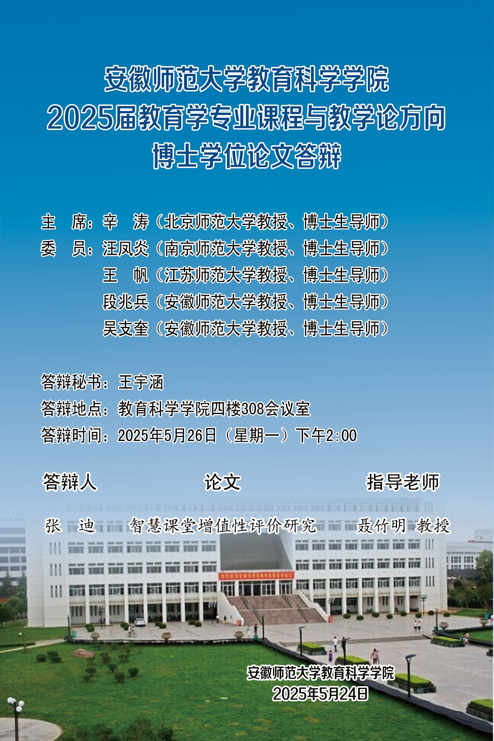 教育科学学院2025年上半年博士研究生学位论文答辩公告(二)