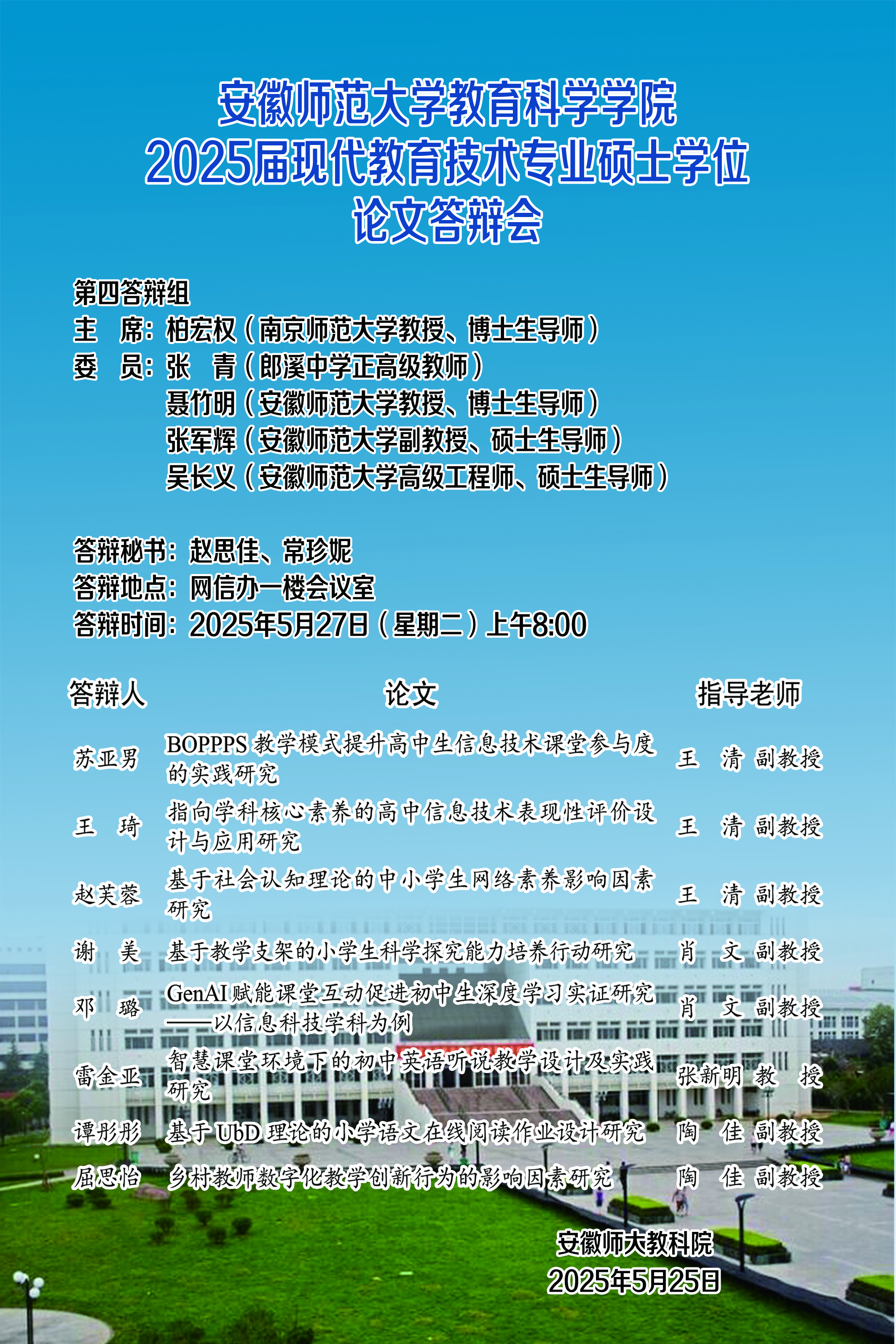 教育科学学院2025年上半年硕士研究生学位论文答辩公告(五)