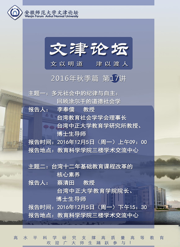 教育科学学院学术报告预告——台湾中正大学教育学院李奉儒、蔡清田学术报告