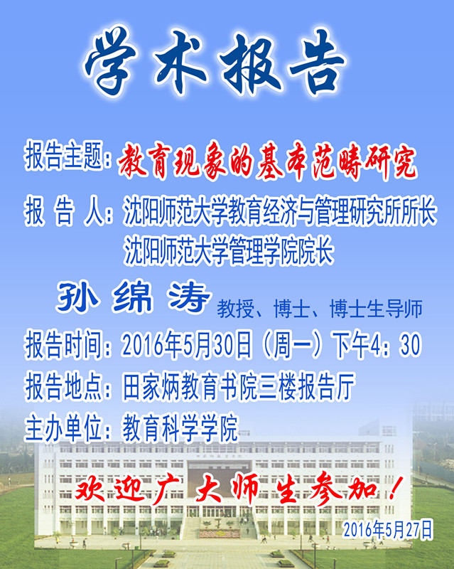 沈阳师范大学博士生导师孙绵涛教授讲学预告