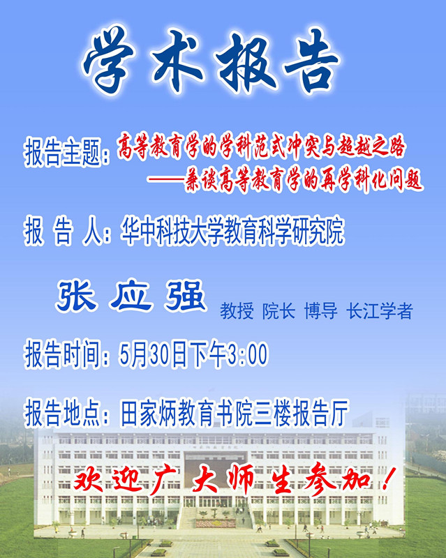 华中科技大学教育科学研究院院长博士生导师张应强教授学术报告预告