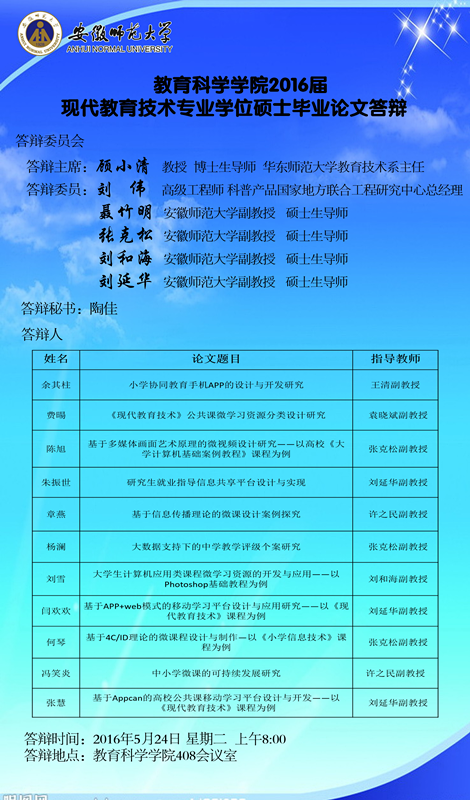 【研究生论文答辩】2016届现代教育技术学硕士学位论文答辩会