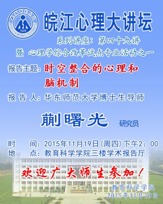 学术报告预告——华东师范大学博士生导师蒯曙光研究员讲学预告