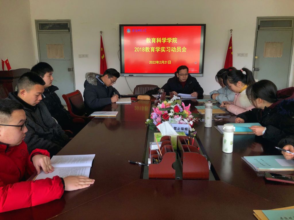 本网讯(教科院 俞晓雨)为保证2018级教育学专业教育实习工作顺利开展,教育科学学院教育学专业于2022221日在田楼B308会议室召开了2018级教育学实习动员会,专业负责人徐赟老师和2018级辅导员程啸老师参与了本次会议。